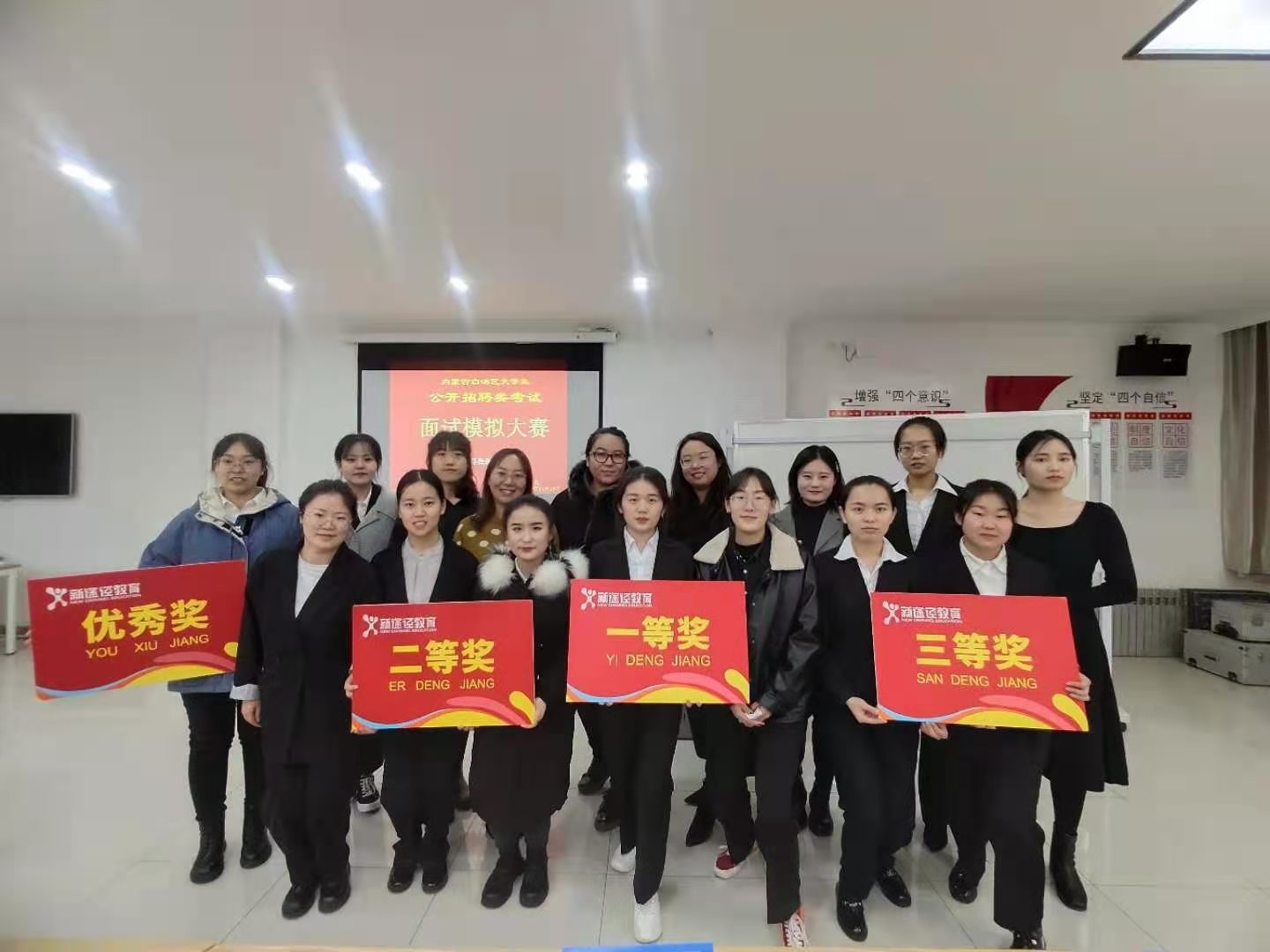 此次大赛邀请了新途径教育培训有限公司的包娜娜等三位老师担任评委。评委通过参赛选手现场十分钟试讲进行打分,经过激烈角逐,最终产生一等奖1名,二等奖2名,三等奖3名,优秀奖4名。模拟面试结束后,评委针对选手的表现做了精辟的点评,对选手们的优点不吝赞美之词,同时也一针见血地指出了选手们在模拟面试中出现的问题,并给出了建设性的意见。