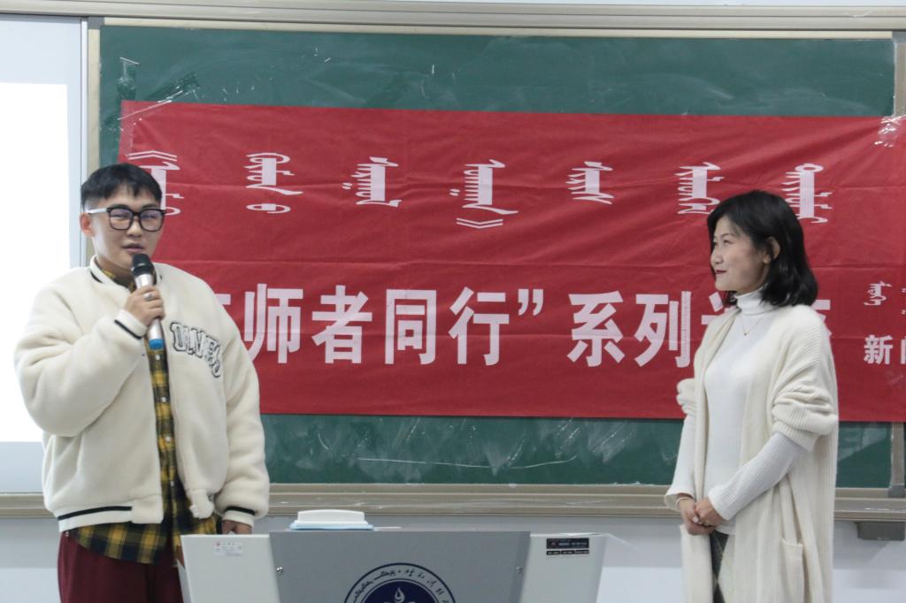 为进一步创设民族团结进步氛围,合理规划大学生活,正确树立青年学子的人生观、学业观、道德观,11月10日晚,新闻传媒学院在都林楼502教室举行了“与师者同行”系列讲座第五期——“优秀毕业生回母校,共创民族团结进步”主题演讲。本次活动特别邀请内蒙古广播电视台蒙古语卫视主持人阿丽玛作“成功的曙光向你招手”内容分享,2020级新生共70余人到场聆听。
