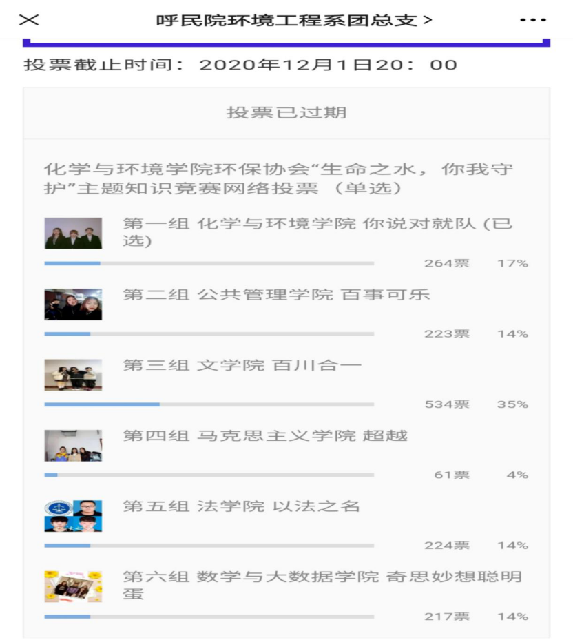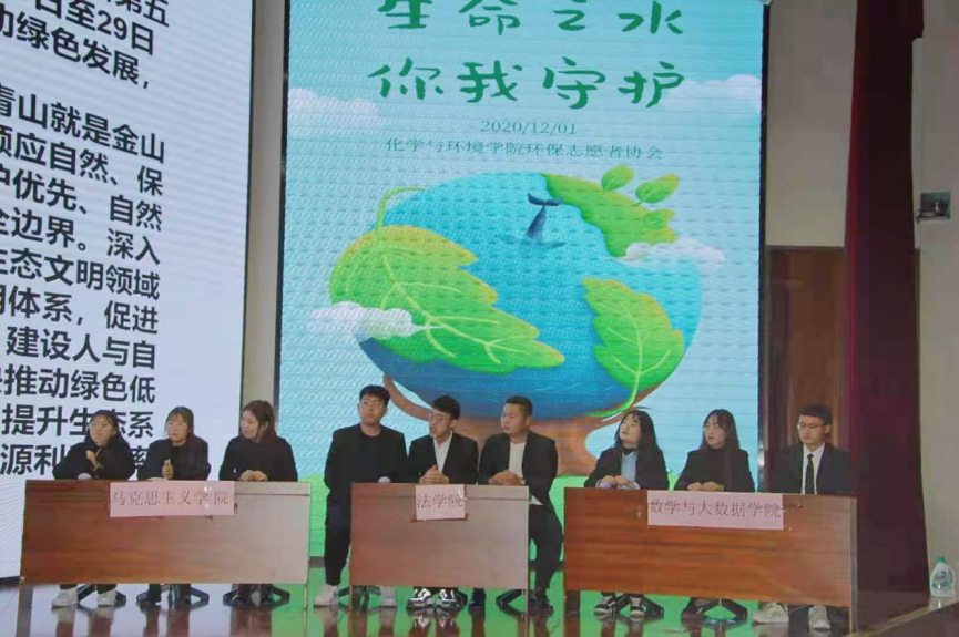 为学习贯彻党的十九届五中全会精神,坚持和完善生态文明制度体系建设,进一步落实推进绿色发展,建设美丽中国的战略部署,唤起全校师生保护环境节约水资源的意识,学校团委联合化学与环境学院团总支于12月1日在图书馆二楼报告厅举办了“生命之水,你我守护”主题知识竞赛决赛,全校各二级学院共有6支队伍进入决赛,分别是化学与环境学院“你说对就对队”、公共管理学院“百事可乐队”、文学院“百川合一队”、马克思主义学院“超越队”、法学院“以法之名队”、数学与大数据学院“奇思妙想聪明蛋队”。全校共有300余名学生观看了本次竞赛。