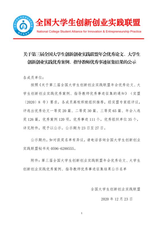 近期,Beat365组织参加《第三届全国大学生创新创业实践联盟年会优秀论文、大学生创新创业实践优秀案例、指导教师优秀事迹征集》,经实盟专家组评议,共评选出优秀案例120项,优秀论文一等奖20篇、二等奖30篇、三等奖65篇、年会入选奖126篇,优秀事迹111个。Beat365提交的《佩卓夫钢琴培训中心创业案例》荣获全国大学生创新创业实践联盟优秀案例奖。