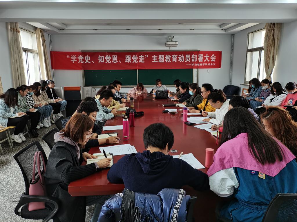 4月1日下午,学前教育学院召开党史学习教育动员大会,学前教育学院党总支书记娜仁其木格作动员讲话,对学院开展党史学习教育进行了动员部署。全体教师及学生党员参加本次会议。