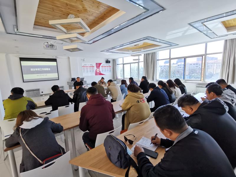 为做好毕业生专项招聘会、档案装订邮寄、就业帮扶台帐落实等专项服务工作,就业指导处于4月13日上午在处室党员学习室组织召开了就业专项服务工作部署会议。就业指导处全体人员、各学院办公室负责人、就业工作辅导员参加了会议,会议由就业指导处处长包仓主持。