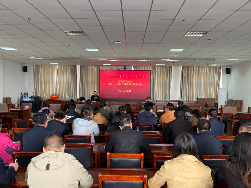 4月26日上午,行政党总支全体党员和处级以上干部在综合楼12楼会议室举办“中国共产党在长期奋斗中铸就的伟大精神”专题学习会。副校长纳丽娜,党委委员、副校长韩伟新及学校督导三组组长乌云巴图出席了专题学习并参加了理论测试。