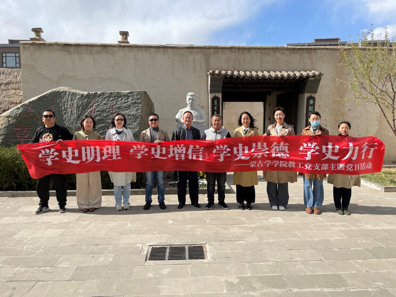 4月27日下午,蒙古学学院教工党支部全体党员到“多松年纪念馆”举行“铭记党史学精神、不忘初心跟党走”主题党日活动。