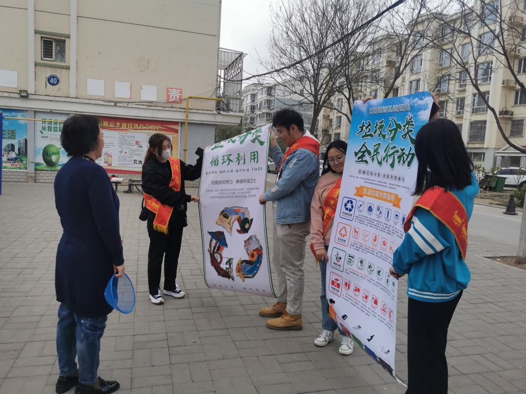 首先,志愿者代表李佳瑶宣读《青春助力“美丽内蒙古”生态治理文明实践行动》倡议书。之后,志愿者向居民们派发垃圾分类宣传资料以及环保购物袋,现场解说如何进行垃圾分类,如何处理垃圾分类等知识,倡议居民垃圾分类应从自身做起,自觉养成保护环境的文明习惯。
