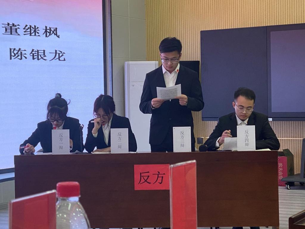 经过初赛角逐后有4只参赛队伍进入决赛,决赛分为2组辩论,辩题正方为“未成年人的刑事责任年龄可以继续降低”和“遏止家庭暴力应以法律制裁为主”,反方的辩题为“未成年人的刑事责任年龄不可以继续降低”和”遏止家庭暴力应以道德教化为主“进行4个环节的辩论和陈述。各参赛选手在赛前做了充足准备,互相之间分工合作,在比赛的过程中配合默契,分工明确,在辩论阶段,充分列举法律依据与事实案例,展现了我院学生学实笃行的专业水平和风华正茂的精神状态,使在场的学生沉浸在激烈的头脑风暴和唇枪舌战氛围中。经过激烈的角逐后,19法学3班荣获此次辩论赛的一等奖,20法学3班荣获二等奖,19法学4班与20法学4班获得三等奖。