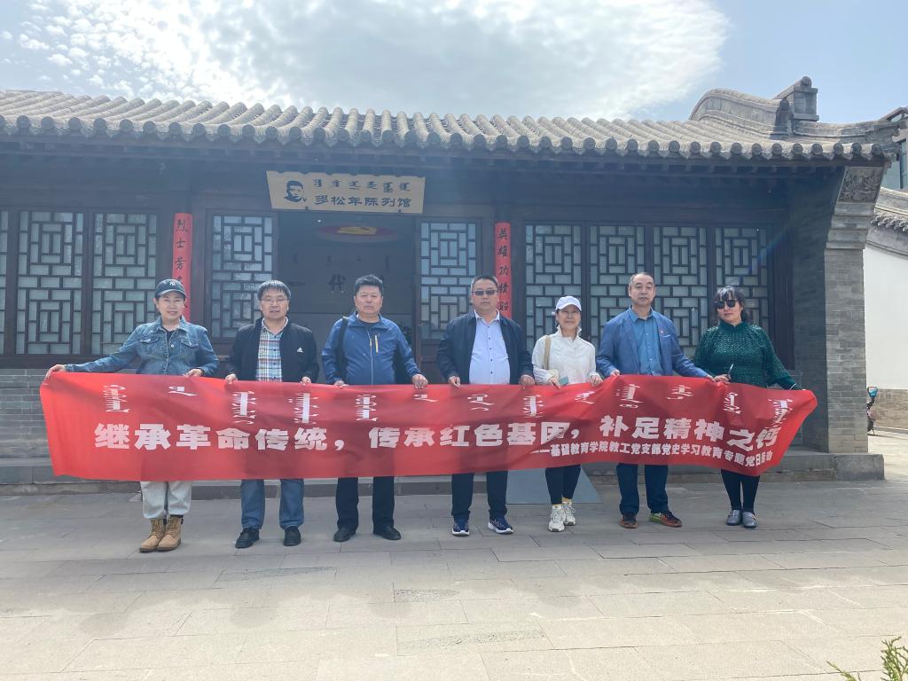 为深入学习贯彻习近平总书记在党史学习教育动员大会上的重要讲话精神,扎实推进党史学习教育,5月8日下午,基础教育学院教工党支部组织教师党员来到爱国主义教育基地、呼和浩特市民族团结进步教育基地多松年烈士纪念馆,开展“继承革命传统,传承红色基因,补足精神之钙”党史学习教育专题党日活动,缅怀革命先烈,传承红色基因,汲取信仰力量。
