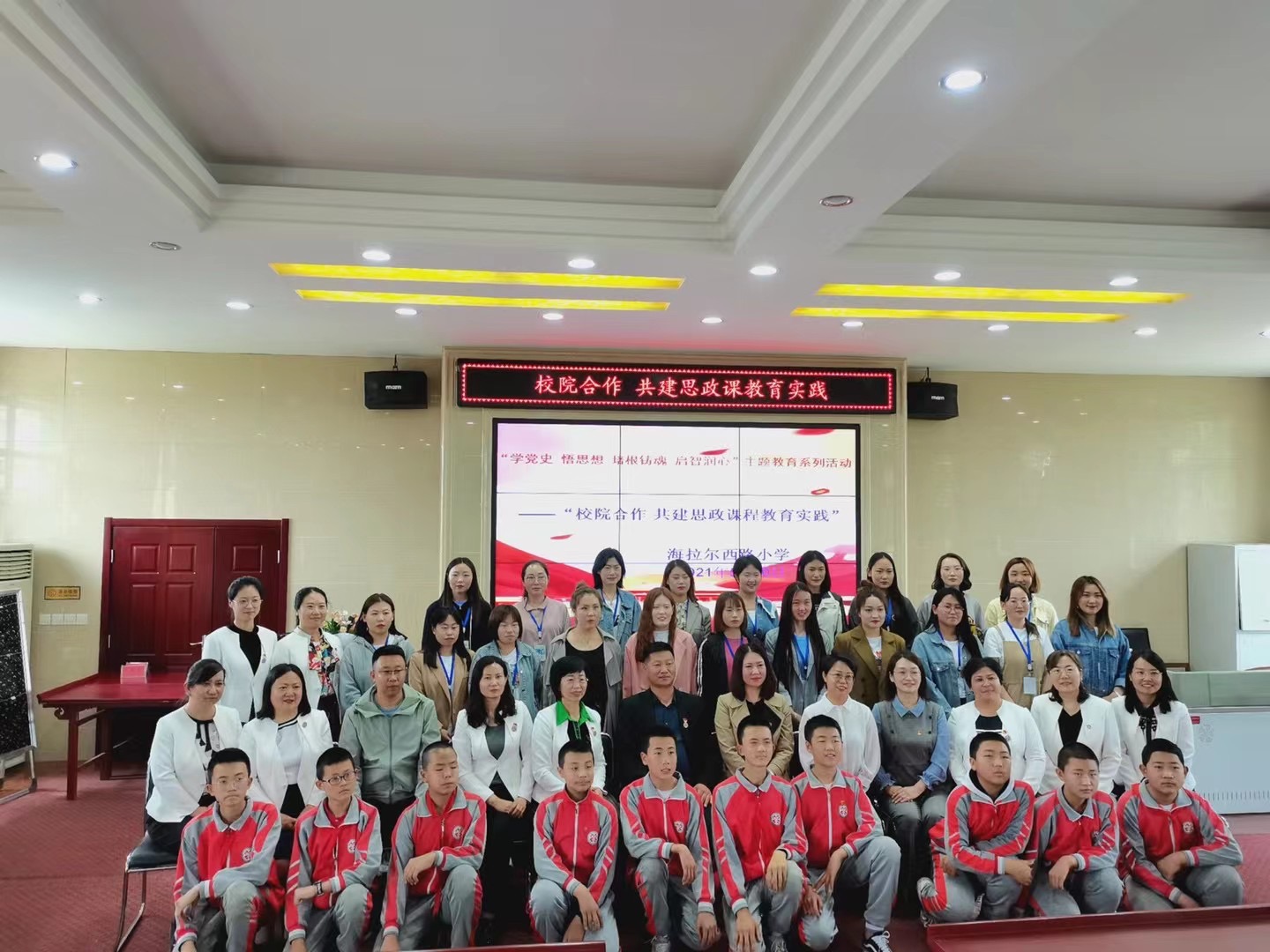 为庆祝中国共产党成立一百周年,深入开展好党史学习教育,提高认识、增强信仰,落实好立德树人根本任务。5月20日下午,马克思主义学院党总支副书记韩琼、辅导员呼斯勒图赴海西路小学参加了“学党史 悟思想 培根铸魂 启智润心”思政课程教育实践活动。