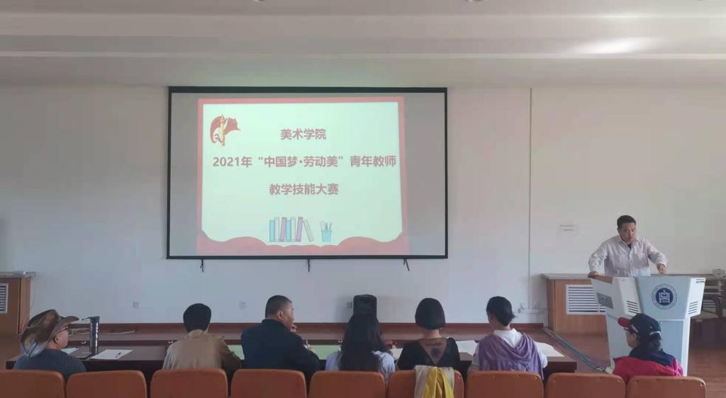 为了深入践行党史学习教育“学党史、悟思想、办实事、开新局”的总要求,引导青年教师进一步强化立德树人理念、锤炼教学基本功,促进教师参与课程教学改革,聚焦课堂,积极探索有效教学的途径和方法,提高教学业务能力与水平。6月3日上午,美术学院在美术四楼阶梯教室举办了2021年“中国梦·劳动美”青年教师教学技能比赛。比赛由美术学院副院长塔娜主持,党总支副书记吴利春、副教授哈斯乌拉、萨仁高娃、环艺教研室主任伊丽亚等教师担任本次比赛评委,党总支书记包旭东和部分教师代表观摩了比赛。