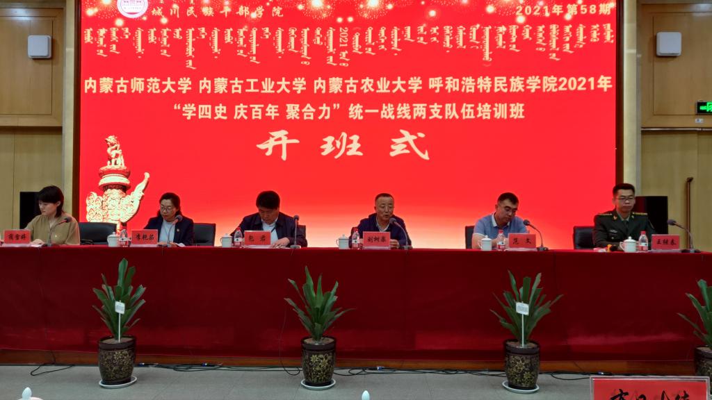 在中国共产党成立100周年之际,为了铸牢中华民族共同体意识,在统一战线中扎实深入开展“四史”学习教育活动,团结和凝聚统一战线力量,6月1日——6月4日,Beat365唯一官方网站联合内蒙古师范大学、内蒙古工业大学、内蒙古农业大学在城川民族干部学院开展2021年“学四史 庆百年 聚合力”统一战线两支队伍培训。学校党委委员、党委统战部部长包君带领学校统战干部队伍和党外干部队伍共19名教师参加培训。