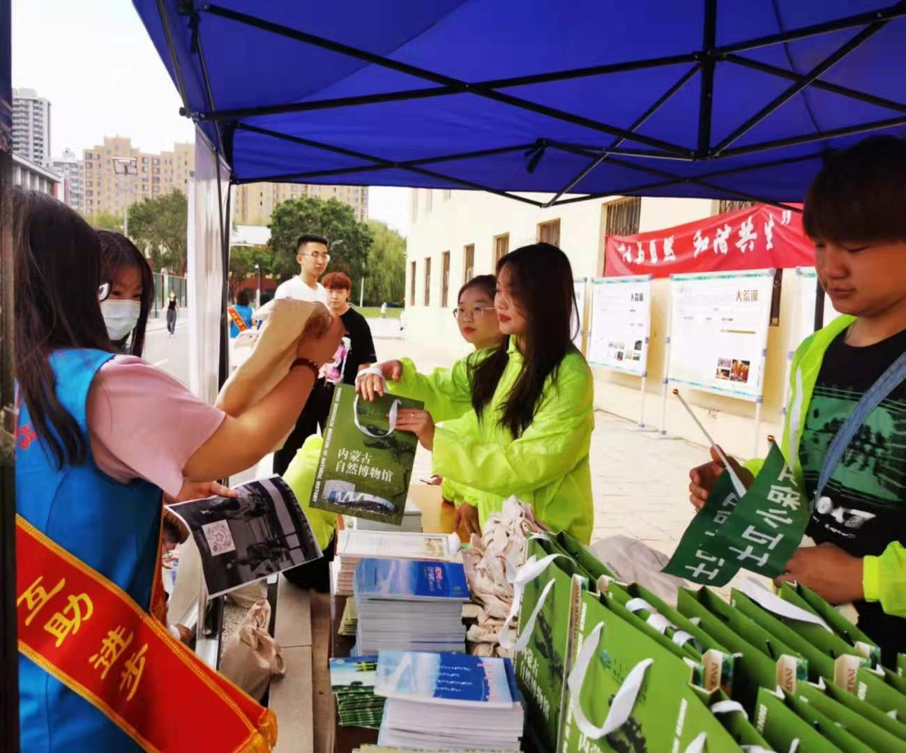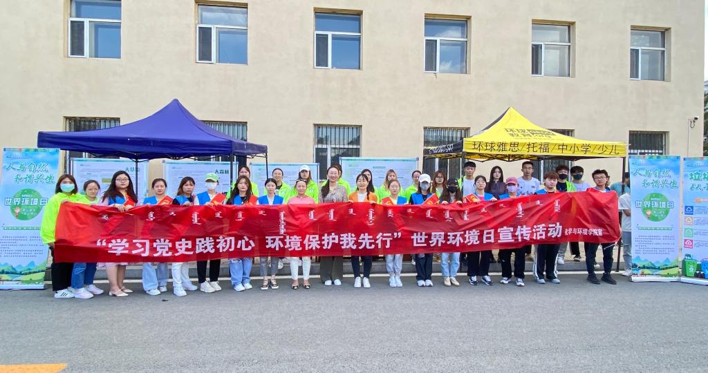 为了进一步学习和践行习近平总书记生态环保理念,牢固树立尊重自然、顺应自然、保护自然的理念,建设人与自然和谐共生的美丽家园, 6月5日上午,在南苑操场化学与环境学院与内蒙古自治区自然博物馆联合开展了“学党史践初心 环境保护我先行”世界环境日主题宣传活动。自然博物馆相关负责人和化学与环境学院乌仁陶格斯副院长,团总支书记乌依勒斯老师参与了本次活动。