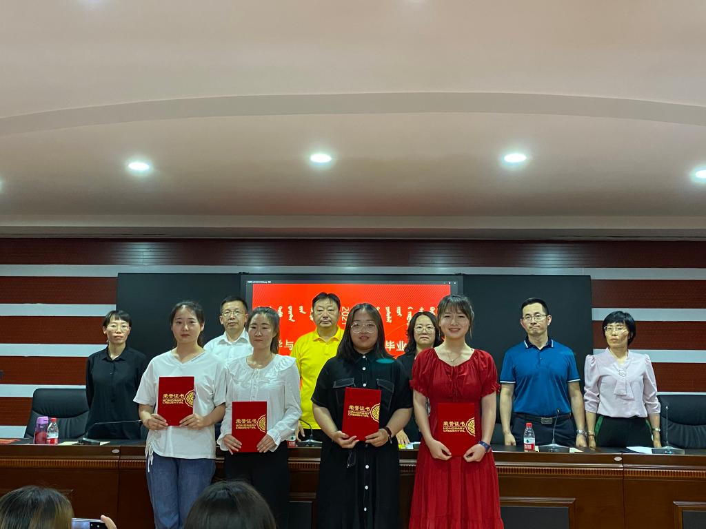 毕业生代表2017级小学教育1班苏雅拉同学谈到“大学期间学会了分析与思考、丰富与凝练、合作与竞争、继承与创新,也学会了如何不断超越自己。我们将要从校园走向社会,我想对于每一位即将离校的学子来说,都是对未来的工作和生活无限憧憬与期待。新时代的大学生,肩负着党的历史责任和时代的使命,大家应该无所畏惧,迈着坚定的步伐,向着未知的明天扬帆起航!”