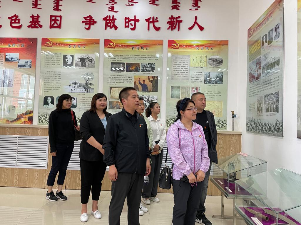 在位于赛罕区腾家营村名言小学内的名言革命史馆内,大家认真倾听了有关刘洪雄等共产党人在名言小学成立第一个归绥农村党支部并团结带领群众开展地下武装斗争的革命故事。1936年,归绥东郊第一党支部在滕家营名言小学成立,在中国共产党的领导下,名言儿女在滕家营这块古朴的土地上,出生入死,慷慨捐躯,铸就了抗日战争胜利的不朽丰碑。随后,全体党员重温入党誓词,进一步坚定了加入中国共产党的初心,增强了永担使命的决心。