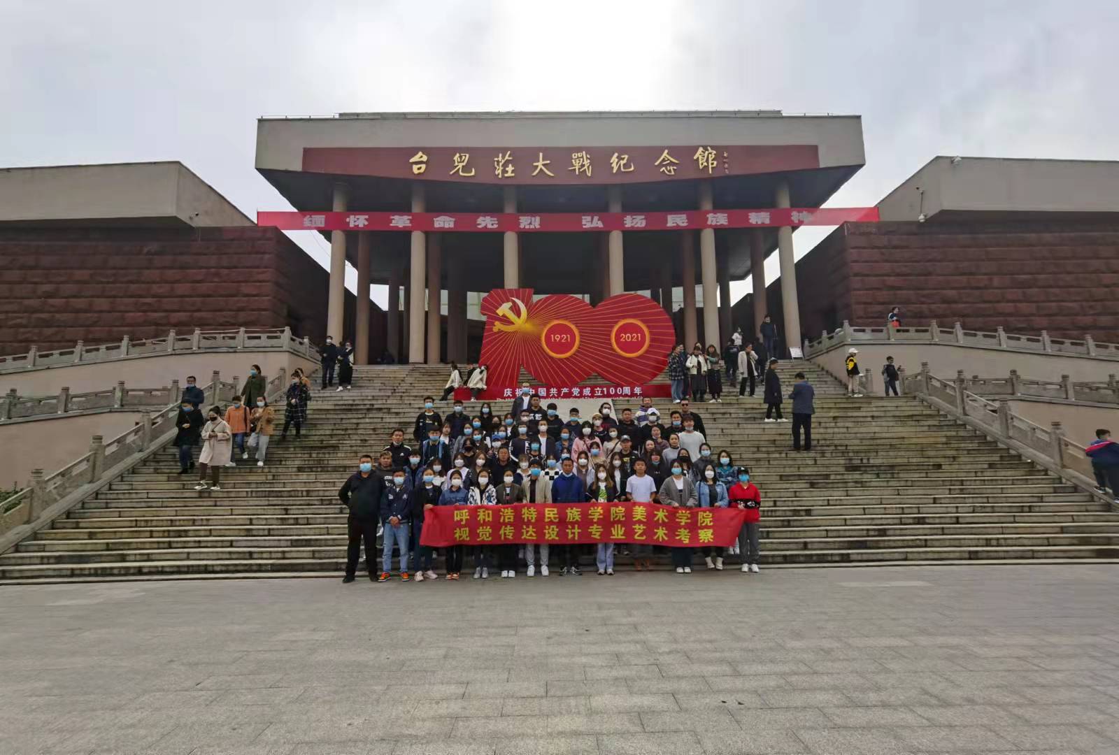 10月16日,66名师生参观了枣庄市台儿庄战役纪念馆。美院师生面对台儿庄大战纪念碑,怀揣着对历史的敬重和对革命先烈的景仰,感受革命先烈无谓牺牲、保家卫国的革命精神,在纪念碑前向革命先烈致敬,使全体师生对这段历史不屈不饶、奋勇前进的红色精神有了更加深刻的认识。