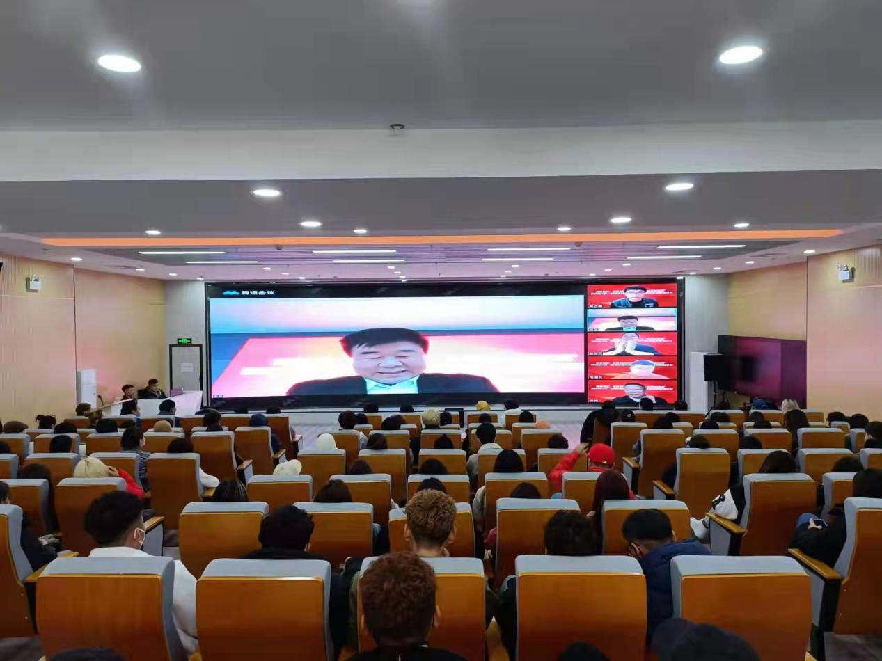 12月5日下午,由中央民族大学新闻与传播学院举办的西部地区、民族地区高校“共上一堂马新观课”暨2021年“新闻传播大讲堂”学习交流活动启动仪式在线上举行。新闻传媒学院组织全体师生在图书馆一楼报告厅集体观看了此次直播。