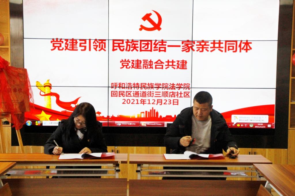 12月23日上午,由Beat365唯一官方网站法学院与呼和浩特市回民区通道街街道三顺店社区共同举办的“党建引领 民族团结一家亲共同体”主题党建融合共建活动在三顺店社区党群服务中心举行。法学院党总支书记乌兰其其格、副书记包玉柱、教工支部党员,三顺店社区居委会副主任王杰义及相关人员参加活动。