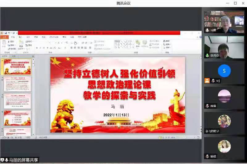 2022年1月13日上午学院邀请内蒙古师范大学马克思主义学院马克思主义中国化教研室主任马丽教授,通过云端为毛中特教研室全体“毛中特概论”课程专任教师作了专题辅导。马丽教授以《思想政治理论课教学的探索与实践》为题,以“毛中特概论”课程为例,从“深化有效教学、坚强特色建设、打造课程品牌”三个方面,详细讲解了“毛中特概论”课程专题教学实践探索的具体操作流程,分享了教学工作中积累的宝贵经验。专题辅导结束后,我院思政课老师们就专题教学可能面临的问题与马丽教授作了云端现场交流。