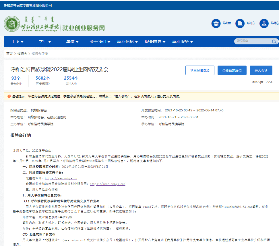 “同心共筑”2022届毕业生高校联合网络招聘会暨少数民族毕业生专场招聘会正在进行中