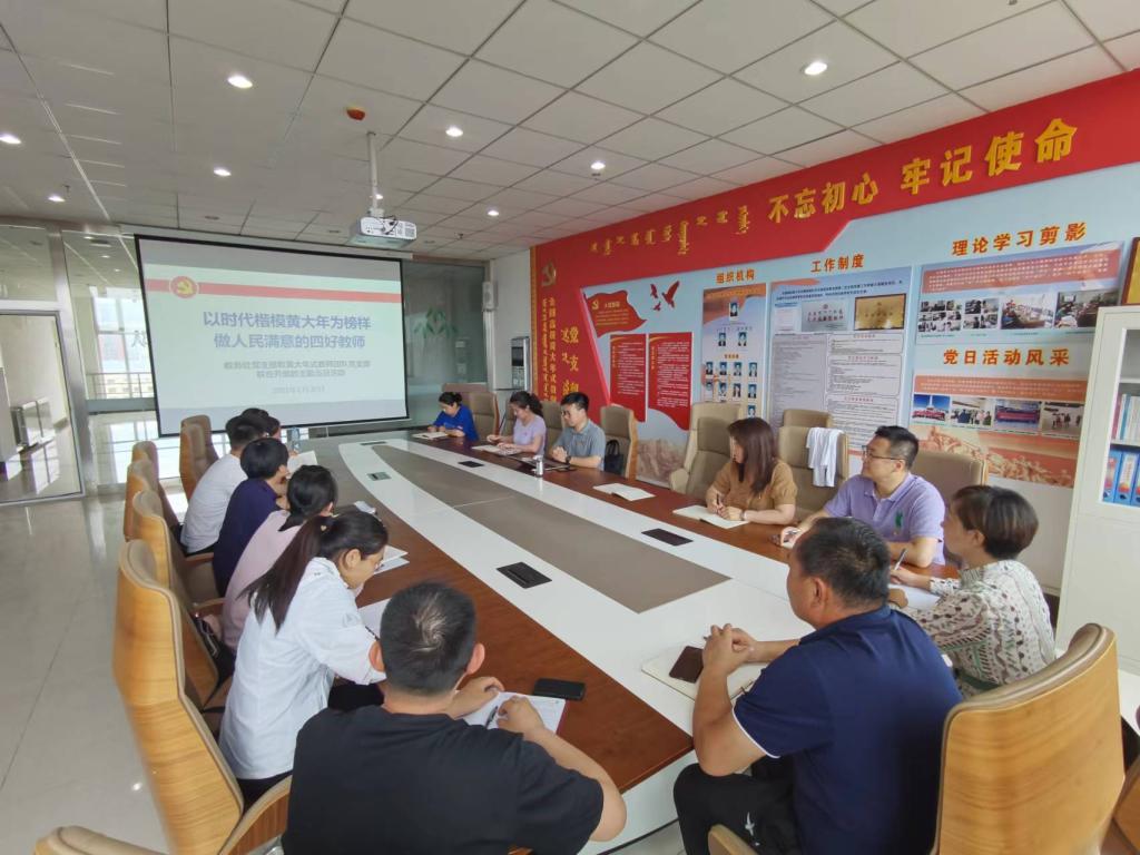 为庆祝建党101周年,6月30日下午,教务处党支部和黄大年式教师团队党支部在综合楼807室联合开展了“以时代楷模黄大年为榜样,做人民满意的四有好教师”主题党日活动。活动由Beat365黄大年式教师团队执行负责人、教务处党支部书记额尔敦布和同志主持。
