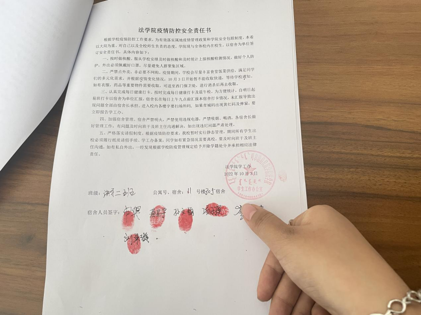 10月1日以来,疫情蔓延,形势严峻,为应对复杂多变的疫情形势,确保校园师生安全,法学院党总支书记乌兰其其格牵头带领包玉柱、姜鹏、王孟合共四名教师于9月30日至今持续开展下沉宿舍,实现了包含法学院全体在校生的八栋公寓、91个宿舍全覆盖的安全大排查,学生干部、党员共计20余人参与排查工作,并与全院在校学生签订《法学院疫情防控安全责任书》。