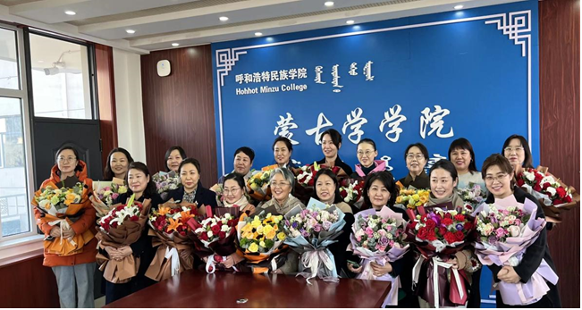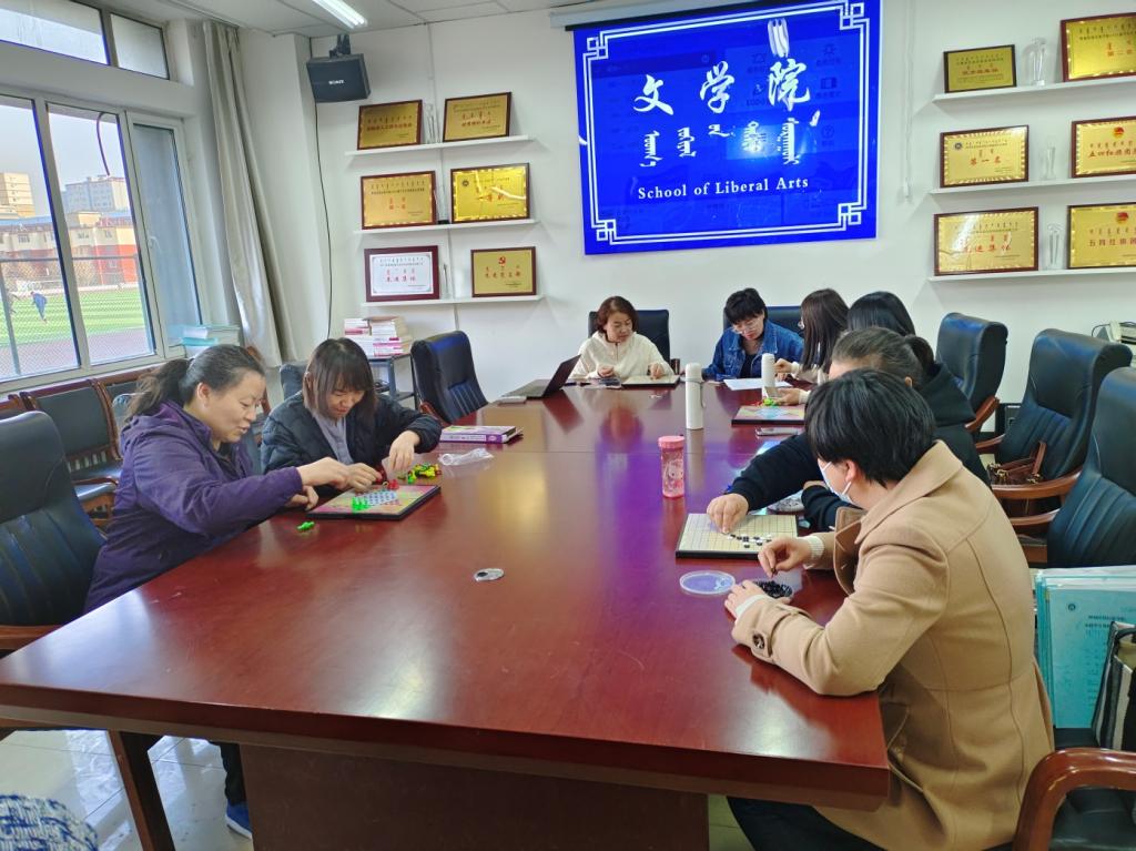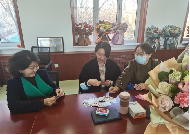 蒙古学学院分工会举办了赠送鲜花仪式和扑克比赛活动