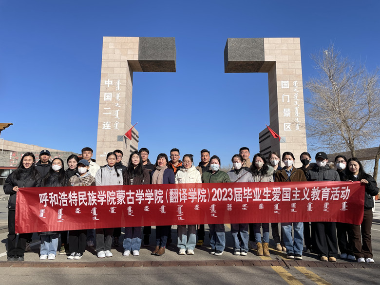 3月26日上午,蒙古学院(翻译学学院)组织2019级小学教育班24名实习生在二连浩特市第五小学实习期间,前往国门开展爱国主义教育活动。二连浩特市出入境边防检查站民警在国门下为实习生们带来了一堂生动的爱国主义教育课。 在中蒙边境815号界碑前,同学们认真听讲解,对中蒙两国的边境走向,国门、界碑的历史以及在国防建设中的重要意义等有了更加深入的了解。 通过此次爱国主义教育活动,让同学们更好地学习了解了祖国口岸边防概况,体验边关文化,进一步深化了青年大学生的爱国主义情怀。