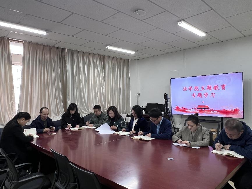 根据学校党委学习贯彻习近平新时代中国特色社会主义思想主题教育领导小组办公室的安排部署,法学院党总支于4月20日下午在尚智楼127会议室召开学习贯彻习近平新时代中国特色社会主义思想主题教育动员会,并开展了第一次专题学习,学院副院长朝克图、教工支部书记胡玉荣及全院全体党员参加了此次学习。
