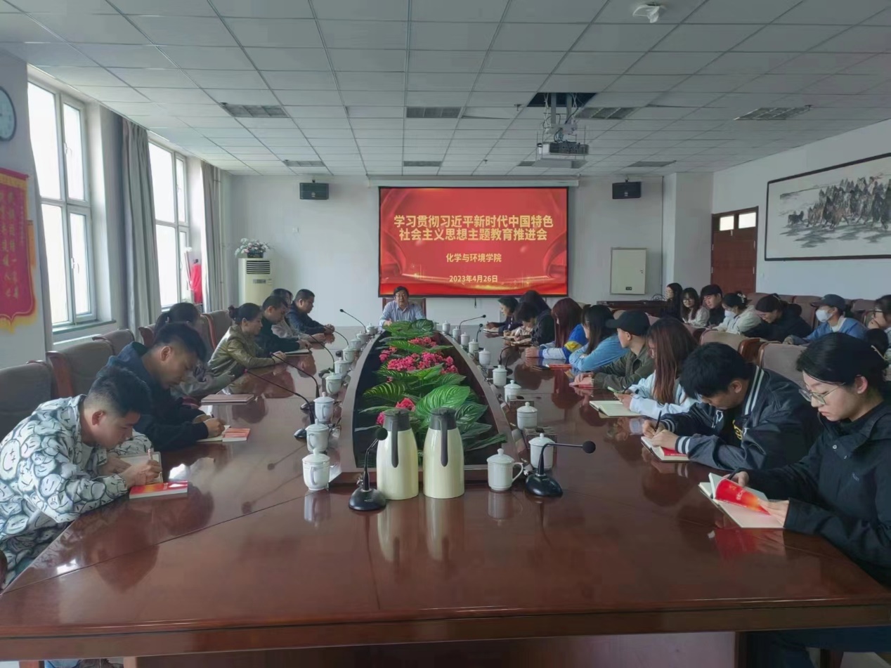 2023年4月26日上午,化学与环境学院党总支召开了学习贯彻习近平新时代中国特色社会主义思想主题教育工作推进会。学院党总支书记朱俊杰主持会议。领导班子成员及全体师生党员参加会议。