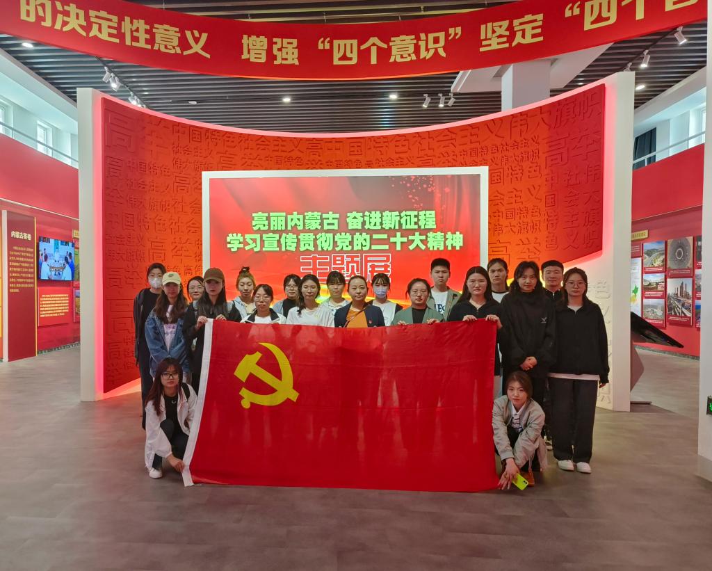 本次活动主要观看了内蒙古自治区展览馆“亮丽内蒙古奋进新征程一一学习贯彻党的二十大精神”主题展。本次主题展览包括“新时代伟大成就”“高举伟大旗帜”“创造新的伟业”三个单元。展览紧紧围绕党的二十大主题,运用影像视频、展品模型、场景演示、多媒体查询等要素,通过直观,形象、生动的形式,展示了新时代十年的伟大变革,阐释了习近平新时代中国特色社会主义思想的世界观方法论和新时代新征程党的使命任务,解读了全面建设社会主义现代化国家的目标任务和重大决策部署,为广大党员干部群众提供了深入学习党的二十大精神的生动教材。