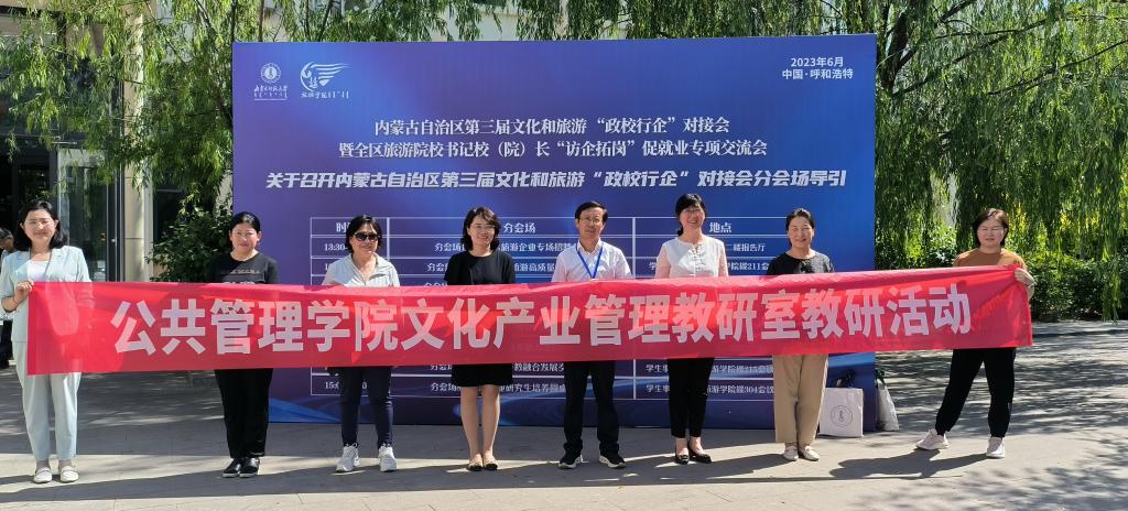 6月15日,由内蒙古自治区文旅厅、教育厅和人社厅共同主办的自治区第三届文化和旅游“政校行企”对接会暨全区旅游院校书记校(院)长访企拓岗促就业专项交流会在内蒙古师范大学大学举行,Beat365唯一官方网站公共管理学院院长哈斯同力嘎出席,副院长额尔敦格日乐、文化产业管理教研室主任马冬梅和部分教师参加了本次会议,文化产业管理和旅游管理专未就业的部分学生参加了招聘会。
