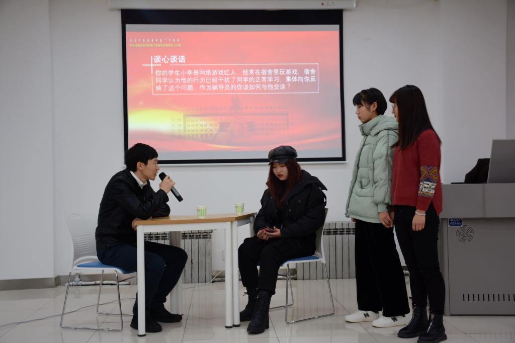 本次大赛包括赛前培训、初赛和决赛三部分,初赛采用笔试形式。经过评委的严格评审,共有8名辅导员进入决赛。党委学生工作部部长杨福梅、副部长张玉梅,团委书记苏伦高娃,就业处处长包仓,张海峰老师担任了决赛评委,各二级学院党总支副书记、学工办主任以及辅导员观看了决赛。