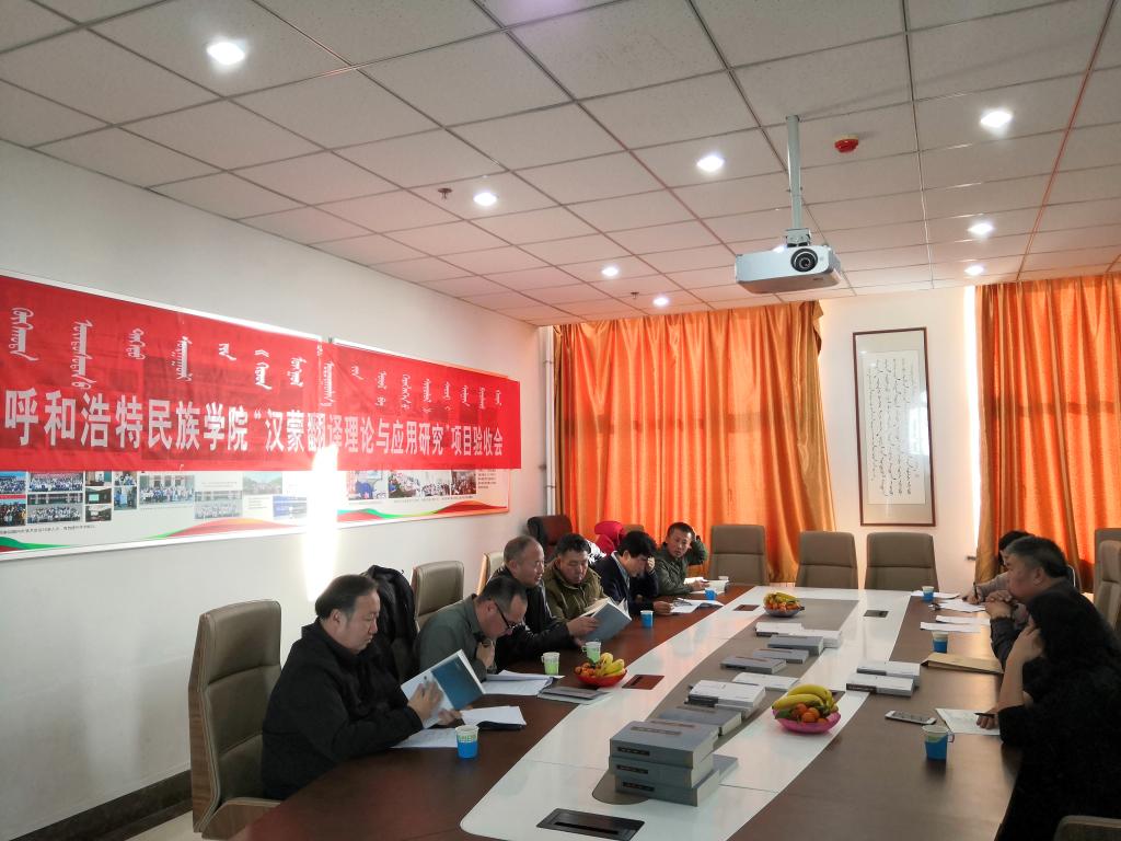 项目成果验收会专家组由内蒙古远方出版社总编苏那嘎、内蒙古师范大学蒙古学学院教授聚宝、内蒙古教育出版社包才胜和内蒙古人民出版社副社长贵荣等出版学、文献学和翻译学的专家学者组成。验收会上,专家组听取了项目组成果汇报,经提问答疑、讨论评选等环节,项目顺利通过验收。