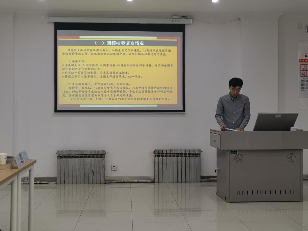 会上,各学院团总支书记、负责教师从思想政治引领、成长服务、自身建设和改革攻坚等四个方面结合本学院的实际情况,总结、汇报了2019年的工作成绩和不足,并重点围绕基层团支部建设完成情况,“青年大学习”开展情况,“第二课堂成绩单”制度推进情况,智慧团建系统内“学社衔接”、“升学衔接”数据、组织整顿数据、以及团员发展等工作进行着重汇报。