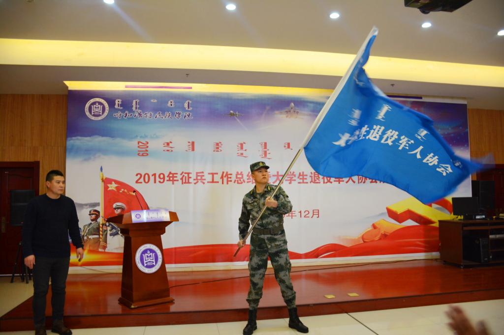 大会中,45名在读大学生退役军人庄严宣誓。陈青春、白永泉、苏伦高娃、包仓为大学生退役军人协会揭牌。相关领导嘉宾为退役军人颁发纪念证书。退役军人代表李丽娜介绍了自己在部队的经历与感悟,讲述了他们在入伍前、新兵训练期间、成为部队老兵以及退役以后不同阶段的心路历程,分享了部队期间开展政治学习、技能训练、文化活动期间的付出和收获,表达了退役军人的强国梦和爱国心。最后,成立大会在《中国人民解放军军歌》的旋律中落下帷幕。