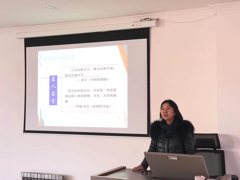 多荣娜老师结合多年从事大学生职业生涯课和就业指导课的经验,主要从个人形象、言谈举止、校园礼仪、交谈礼仪、电话礼仪、乘车礼仪、餐桌礼仪、握手礼仪等方面进行标准示范。多荣娜老师强调大学生应该注意自己的一举一动,一言一行,把个人素质和礼貌作为一个社会交往的必备技能。通过主题培训,同学们进一步的认识到综合素质、形象礼仪在日常生活中的重要性和必要性。