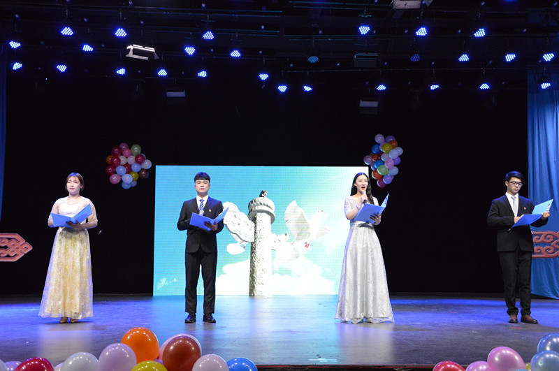 为庆祝新中国成立70 周年,激发青年担当精神,丰富校园文化,展现爱国情怀,12月1日晚,化学与环境学院在学校演播厅举办了“敬终如始守初心,凝心聚力担使命”主题迎新晚会。化学与环境学院院长李福全、团总支乌依勒斯、专职辅导员陈斌、新生班主任包呈敏、昭日格、萨如拉以及全体新生观看了演出。