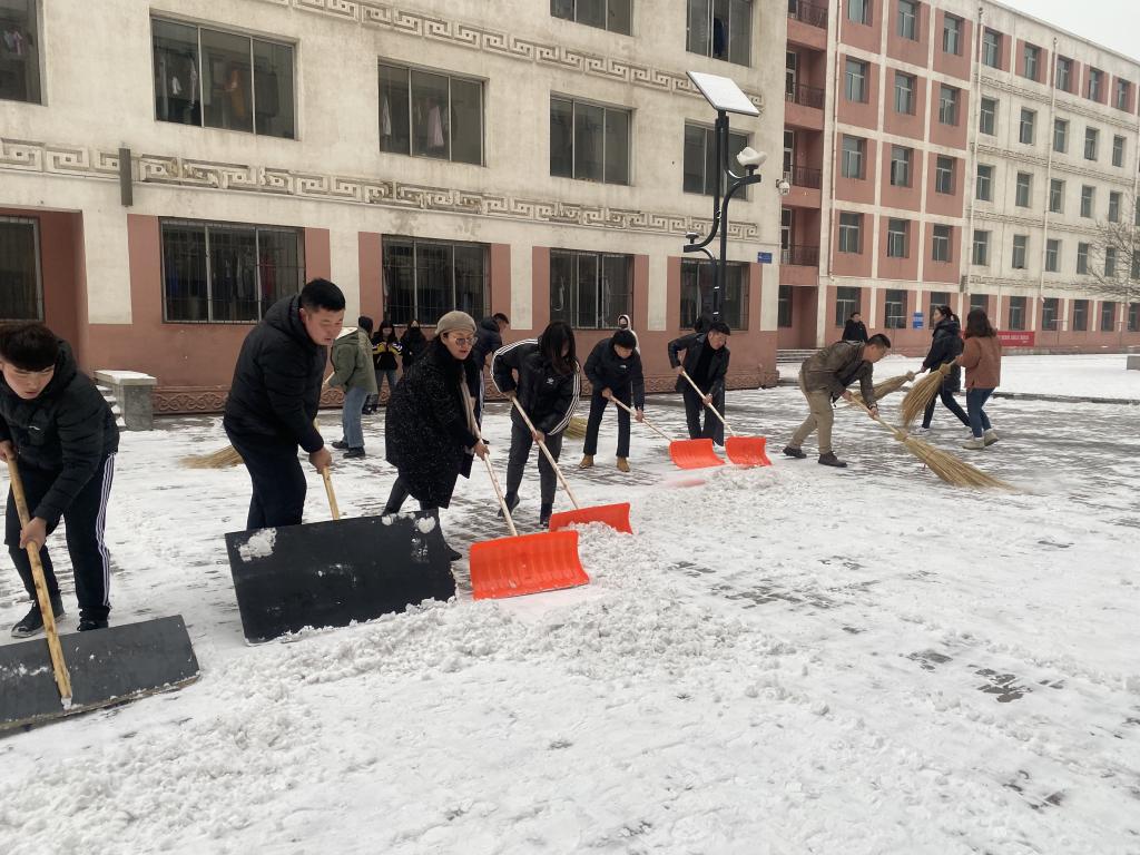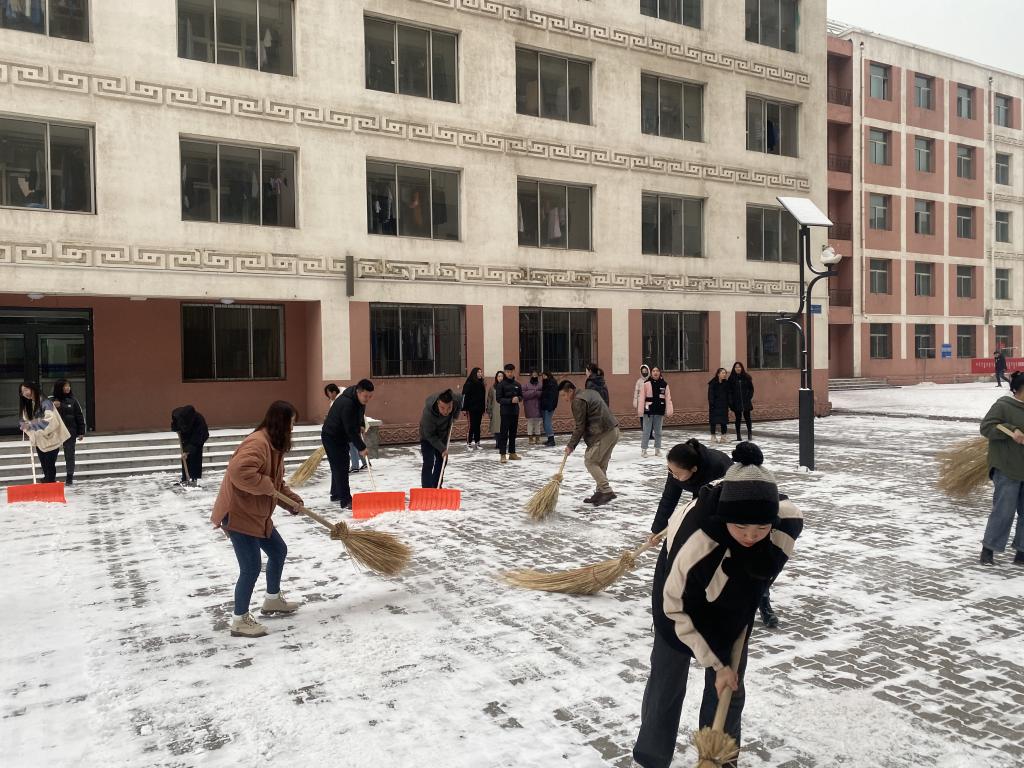 活动中,大家分工明确、团结协作,不畏严寒,干得格外起劲。尽管大家的脸和手都冻得通红,但手中的扫雪工具却不停地挥舞着,忙得浑身是汗,在欢声笑语中扫出了干净畅通的道路。公寓周围道路上的积雪在大家的辛勤劳动下,全部清理干净,方便了老师和学生们的正常出行。