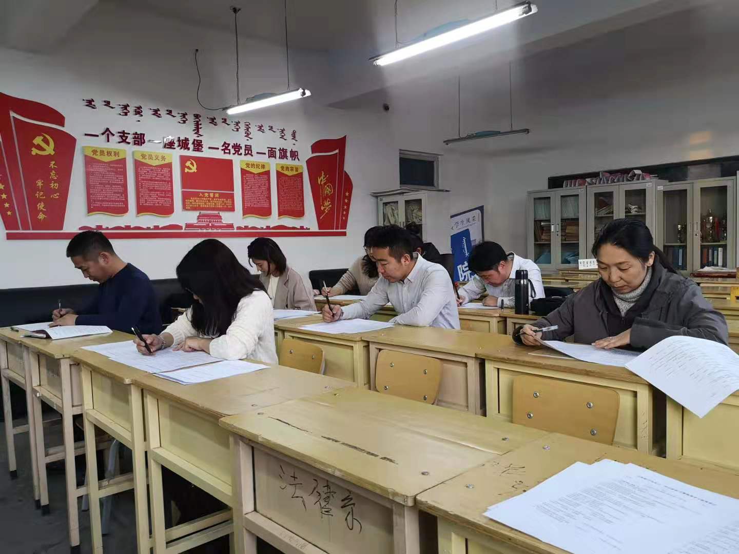 为深入贯彻“不忘初心、牢记使命”主题教育,学习习近平新时代中国特色社会主义思想和党的十九大精神。11月19日下午,法学院在沃德楼403组织师生党员50余人,分批次进行了“不忘初心、牢记使命”应知应会知识测试。