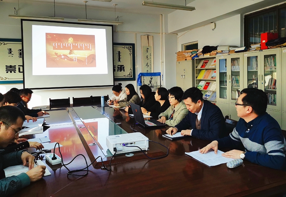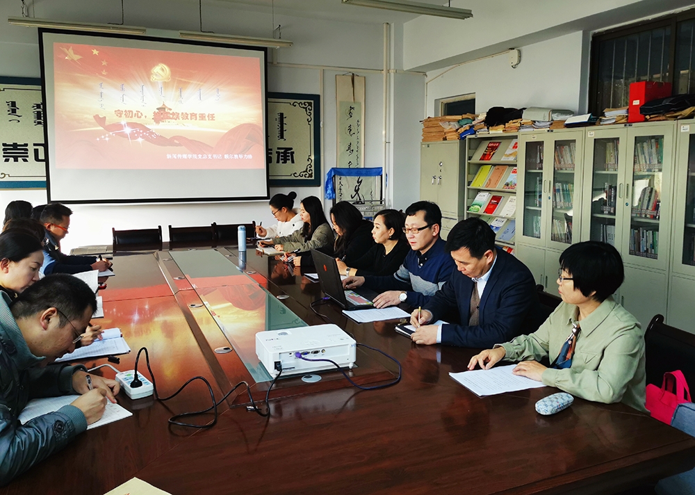 首先,学院党总支书记额尔敦毕力格同志讲授了主题为《守初心,担民族教育重任》的专题党课,分别在关于初心和使命的认识、新闻传播类专业学风建设促学生管理工作调研情况、加强和改进工作的思路举措三个方面进行了讲授。