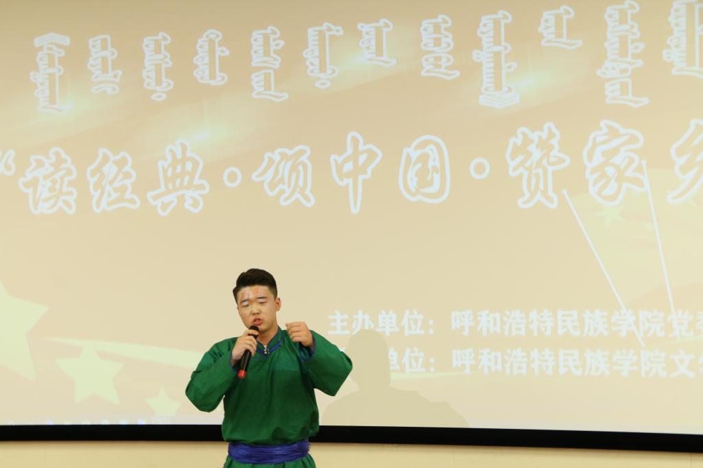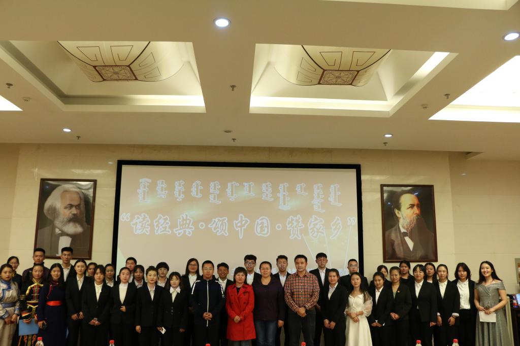为深入推进主题教育,丰富校园文化生活,弘扬民族文化精髓,11月5日晚7时,由宣传部主办,文学院承办的“读经典,颂中国,赞家乡”诵读大赛,在Beat365学习讲堂(图书馆一楼报告厅)举行。宣传部部长王玉玲、宣传部张海峰老师、团委书记苏伦高娃、蒙古学学院王桂荣教授、新闻与传媒学院图木舍老师、文学院党总支书记李宏亮、院长崔凤珍以及各学院共200名学生代表参加了本次活动。