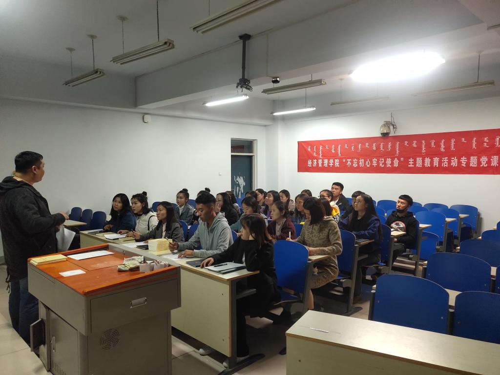 为将“不忘初心、牢记使命”主题教育引向深入,10月22日,经济管理学院学生支部书记李延茂在都林楼205为全体学生党员上了一堂生动的党课。