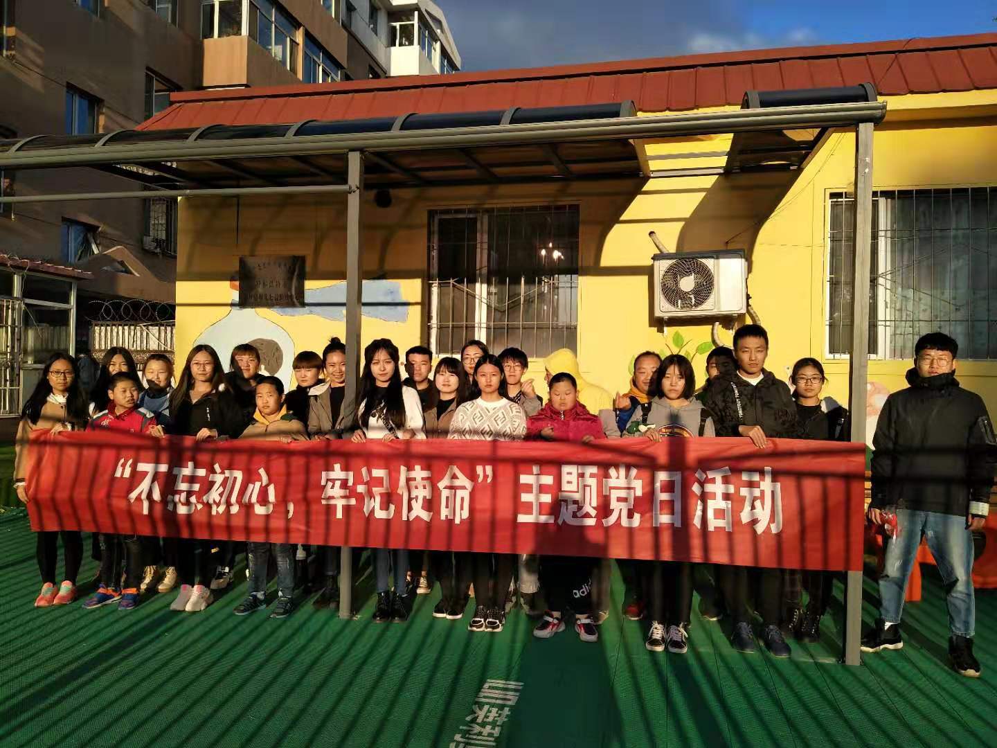 为深入开展“不忘初心、牢记使命”主题教育,培养学生党员责任意识,激励学生党员成为有理想、有学问、有才干的实干家,10月24日下午,外国语学院学生党支部组织学生党员、重点培养对象和入党积极分子共20余人赴团结小区“爱加倍星儿公益助残中心”开展了“不忘初心、牢记使命”主题党日活动。