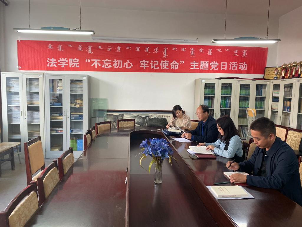 根据学校党委“不忘初心、牢记使命”主题教育总体安排,10月24日,法学院党总支在学院资料室召开主题教育推进会。党总支书记乌兰其其格主持会议,学院处级班子成员参加会议。
