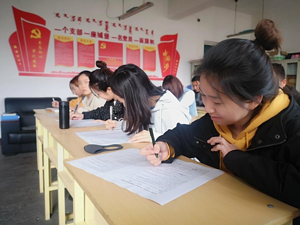 测试以笔试答题的形式进行,题型分为选择题、填空题和简答题。内容紧密围绕党的十九大精神、习近平新时代中国特色社会主义思想和党章党规内容。通过测试,提升学生党员对主题教育的学习,同时进一步推进主题教育的实效。