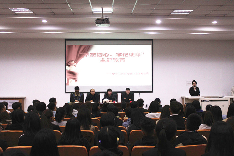 根据学校“不忘初心、牢记使命”主题教育总体安排,校团委结合本部门的工作实际,为进一步推进学生会改革工作,提升学生干部的综合能力,于10月15日晚,在美术楼四楼阶梯教室开展“不忘初心、牢记使命”主题教育——学生干部能力提升工作专题会。校团委全体教师、校学生会全体学生干部参加了此次会议。