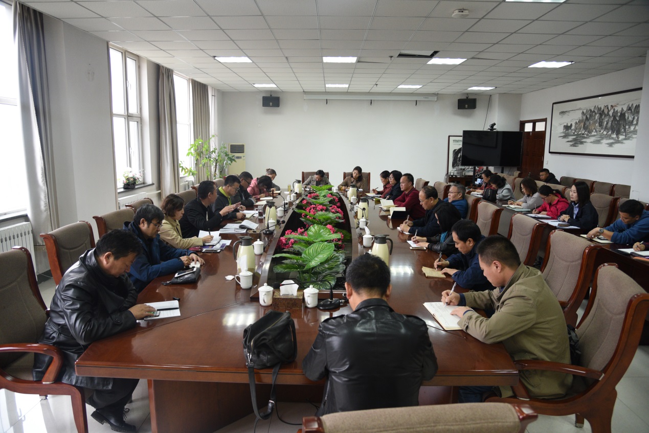 10月16日上午在综合楼11楼会议室,教务处召开围绕主题教育,解决教学问题推进会。会议由党委委员额尔敦布和处长主持,参加此次会议的有教师发展与教学评估中心负责同志、二级学院院长、副院长及相关人员。