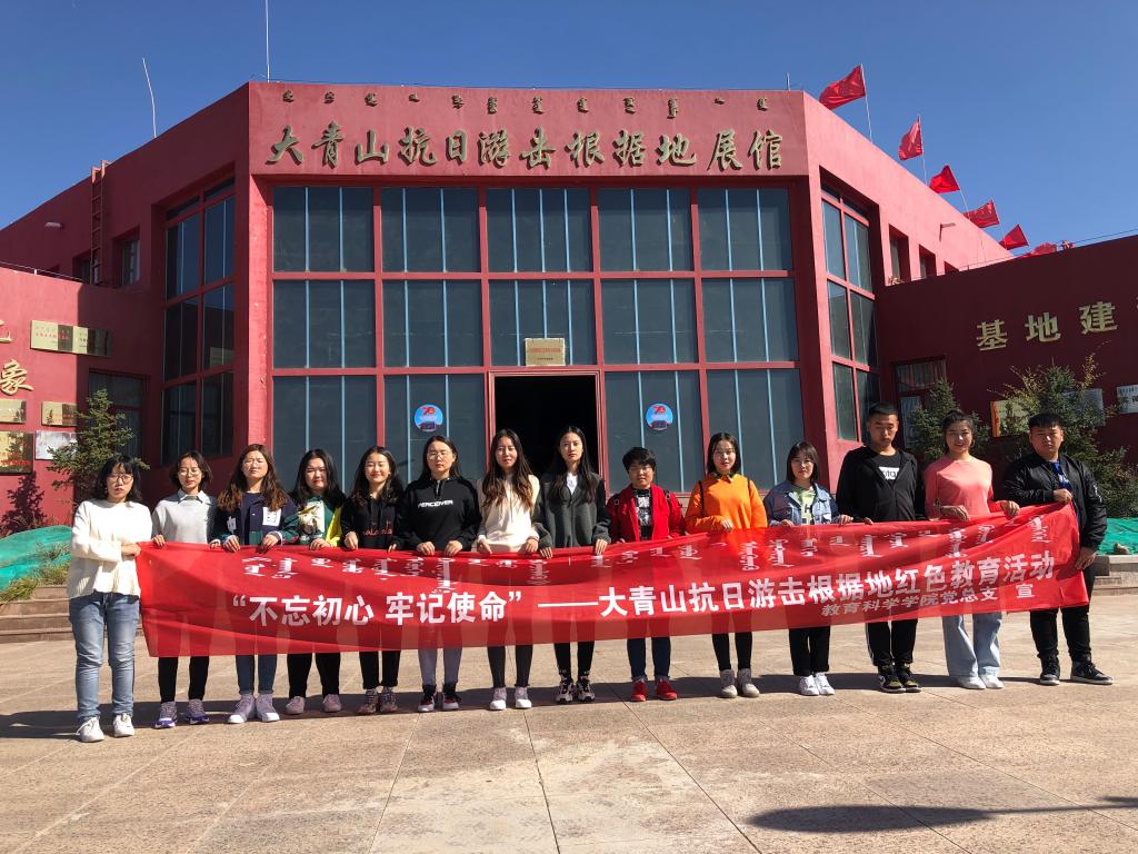10月11日教育科学学院党总支组织教师及学生党员前往武川县大青山抗日游击根据地展馆开展“不忘初心、牢记使命”主题教育。