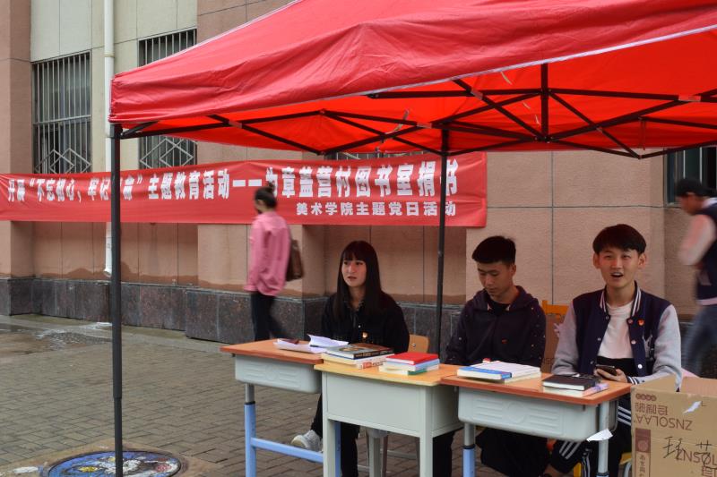 为了推动“不忘初心、牢记使命”主题教育的深入开展,不断提高党组织的凝聚力、战斗力和号召力,丰富党组织活动形式,提高党员思想觉悟和认识,美术学院党总支于9月20日在学院二号公寓楼前开展了“不忘初心、牢记使命”主题党日活动。本次活动中,美术学院师生党支部在校园中收取学生阅读后的闲置书籍,并将其捐赠给玉泉区章盖营村委会图书室。