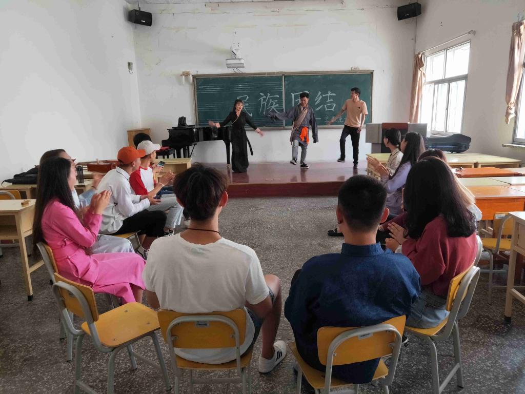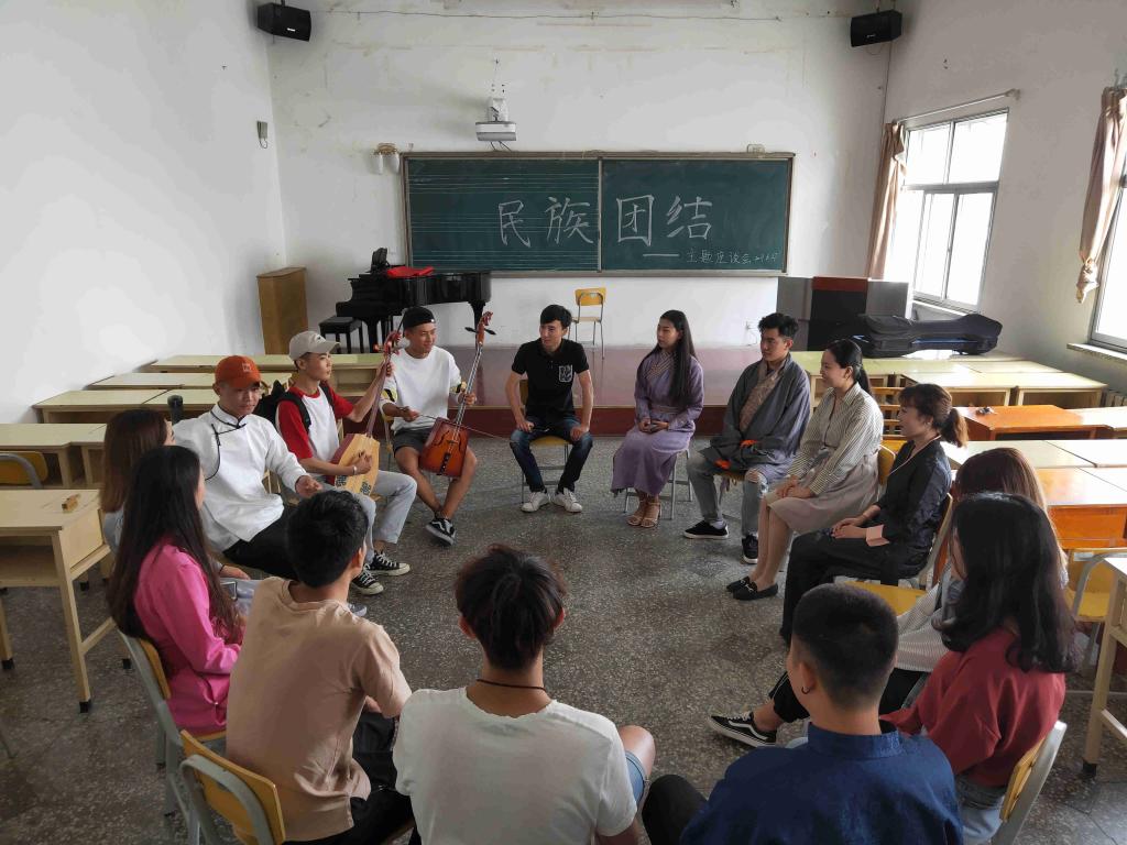 此次座谈会,由2018级新疆学生蒙克·道尔加拉、2018级西藏学生次仁曲加和2017级兴安盟学生包明利三位同学,用马头琴、图布秀尔、口弦琴等乐器编曲合奏进行表演,拉开座谈会帷幕。来自西藏的三位同学现场跳起家乡的舞蹈。接着,同学们依次介绍自己家乡的民族习俗、民族文化和民族乐器、音乐等,大家畅所欲言,互相了解,增进了彼此感情。最后,本次座谈会在所有学生代表齐唱《爱我中华》的歌声中落下帷幕。