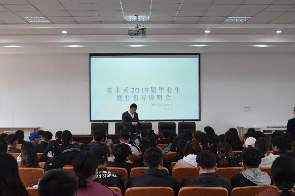 为了做好2019届毕业生的就业指导工作,2月27日下午,美术系在美术楼四楼阶梯教室召开了2019届毕业生就业指导说明会。会议由美术系团总支书记白永泉主持,专职辅导员常志君老师及2019届全体毕业生参加了会议。